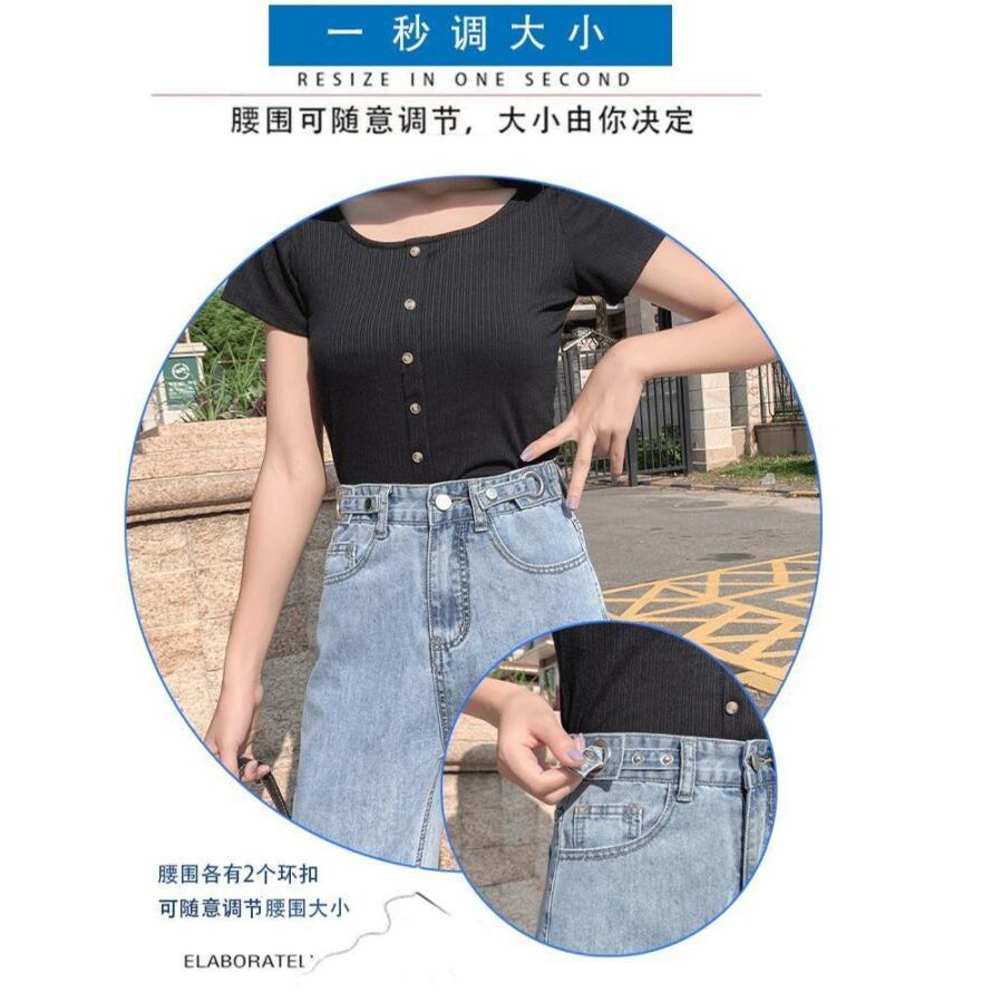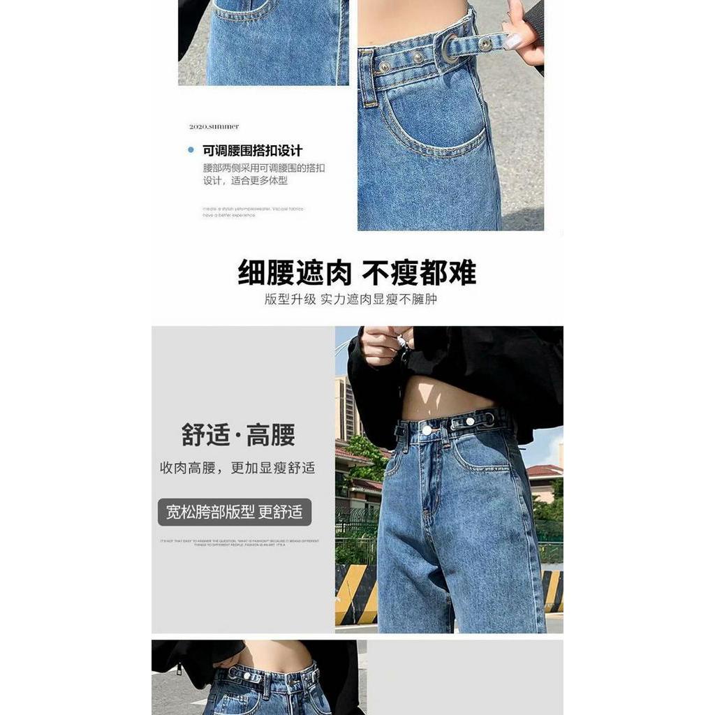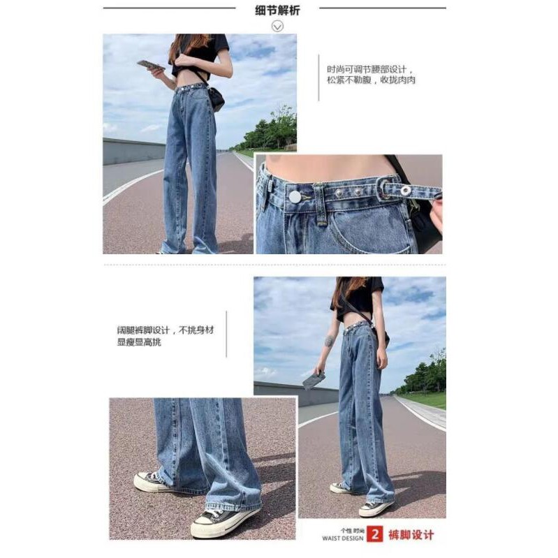 【OOTD批發】XS-2XL店長推薦!優選高腰闊腿牛仔褲 女大碼顯瘦寬鬆拖地長褲 可調節褲頭設計 高腰牛仔長褲 韓版
