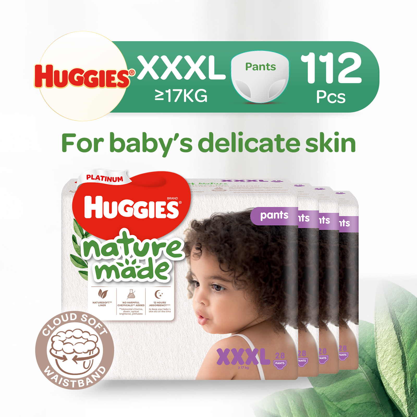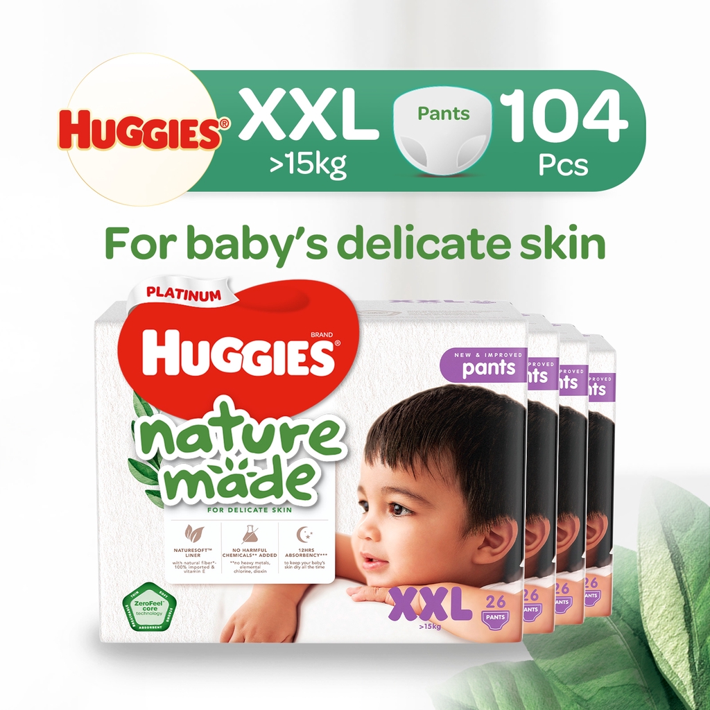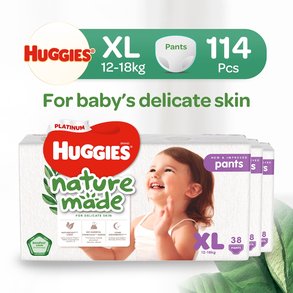 [1 Carton] Huggies Platinum Naturemade Pants M-XXL