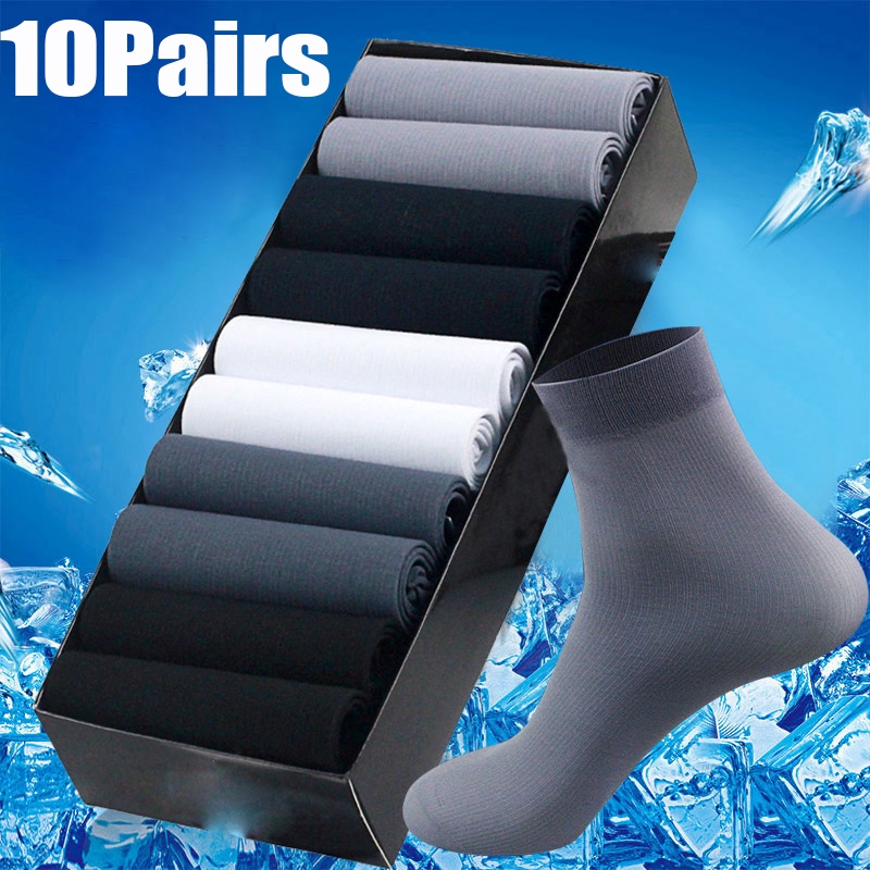 10pairs Men's Socks Ice Silk Socks Solid Color Business Socks Breathable Soft Socks Ankle Bamboo Fiber Socks Socks