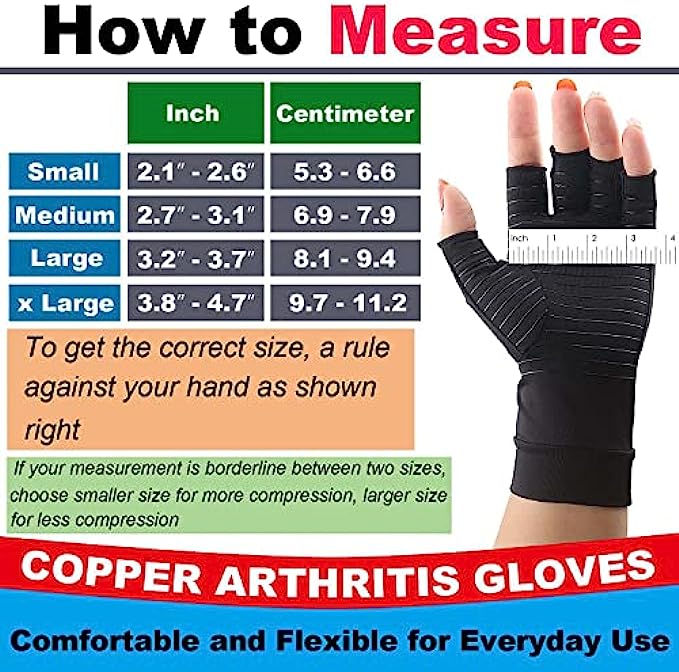 • 【2 Pairs Pack Arthritis Gloves for Pain Relief】 - If you are struggling with arthritis, osteoarthritis, rheumatoid pains, muscle stiffness and hand inflammation, our hand pain gloves are dedicated to ease pains in the most natural way. Innovative copper fabric is permeable to air and sweat, absolutely suitable for all day and night wear.