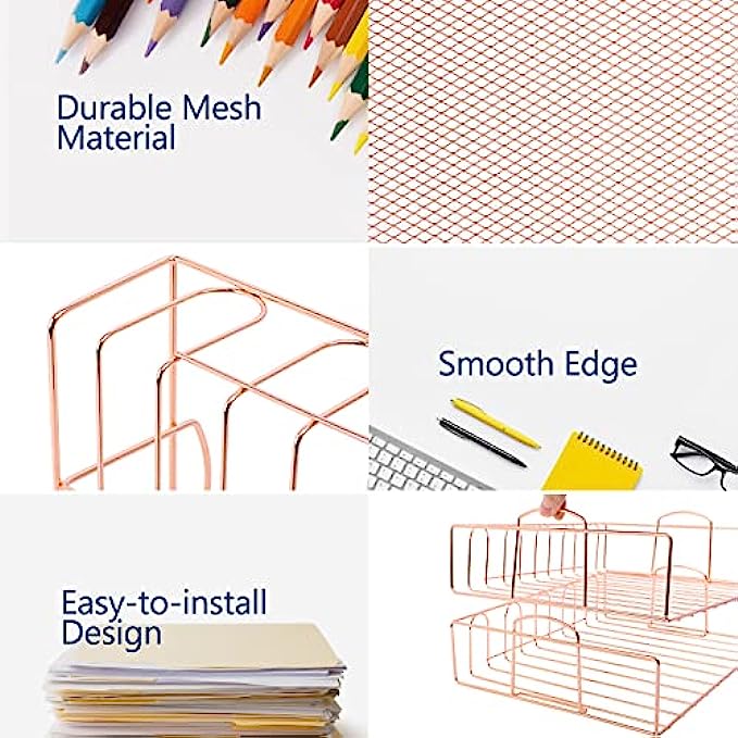 【Sturdy Plated Construction】-Made of high-quality plated metal in rectangle shape, sturdy and durable, easy to store and pick up. Smooth metal streamlines and rounded angles design protect your desktop from scratch. Stackable capabilities increase and utilize vertically-stored space to maximize your desktop workspace.
