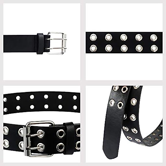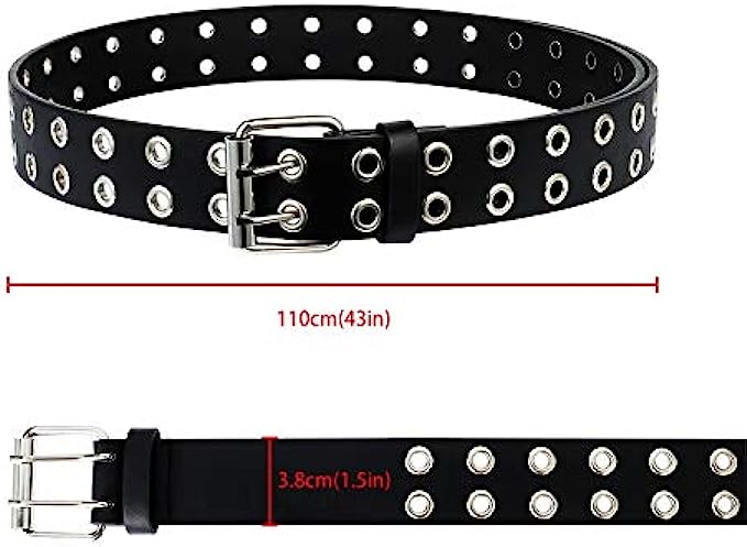 • ❤Beautiful design: Made from durable PU leather, and featured the most popular two rows of grommets and buckle, this double grommet belt adds a nice edgy touch to your outfits.