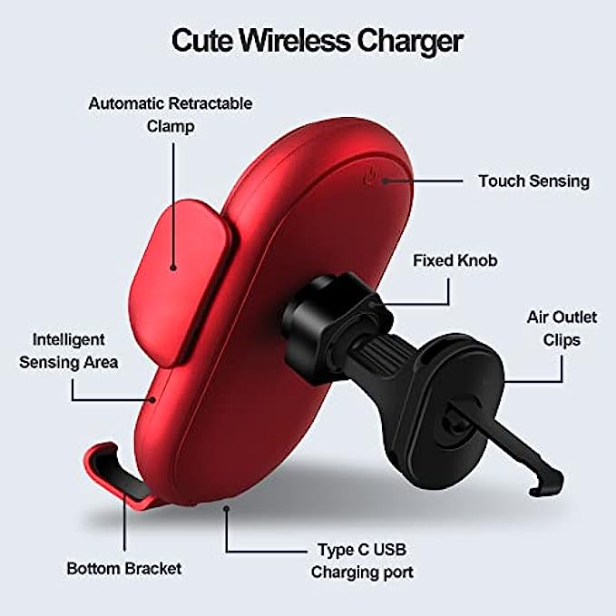 • ?Cute Design: It designed like a happy healed fashion buddy with shinning eyes. Smiling all the time. The lovely wireless charger makes the boring driving journey more fun!