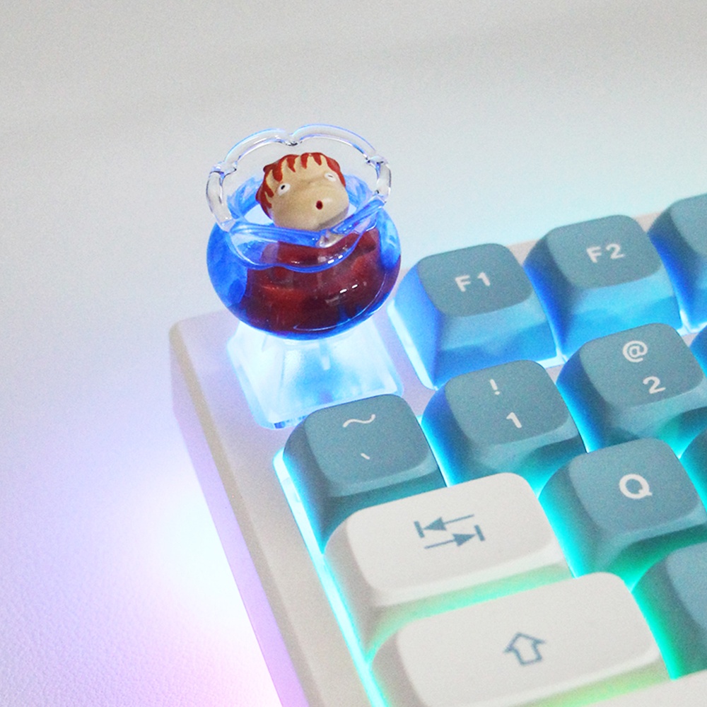 Cute Artisan Goldfish Princess Keycaps Florescent Light OEM Profile Transparent Keycaps for Mechanical Keyboard Keycap