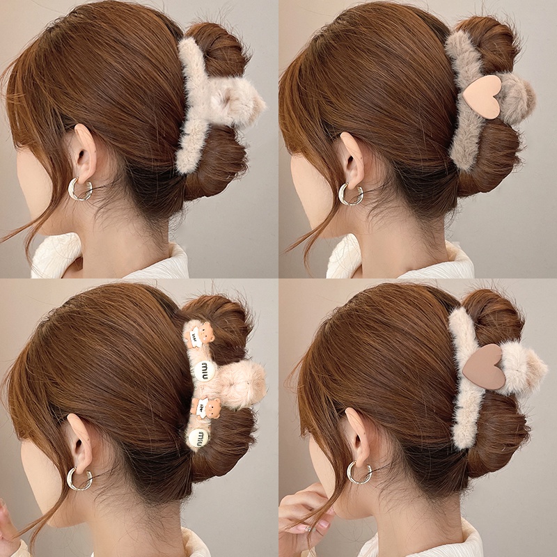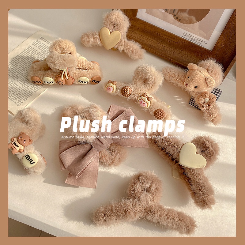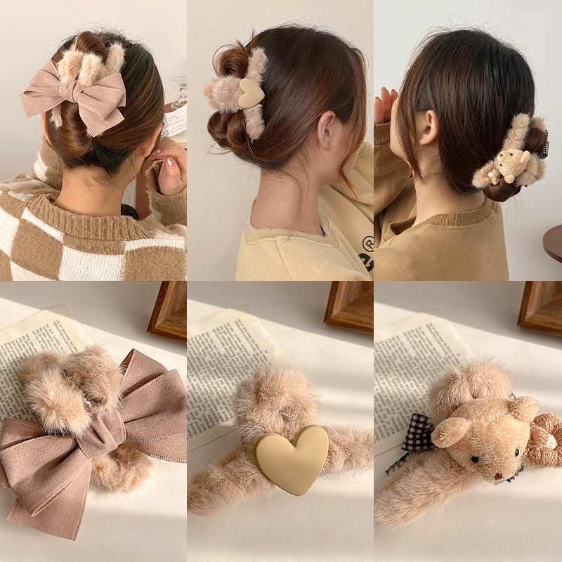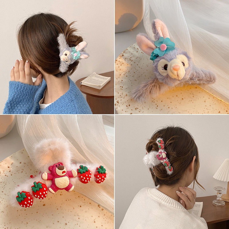 Cute Bear Strawberry Plush Hair Claw Clip Rabbit Astronauts Heart Bow Hairpin for Women Hair Accessories