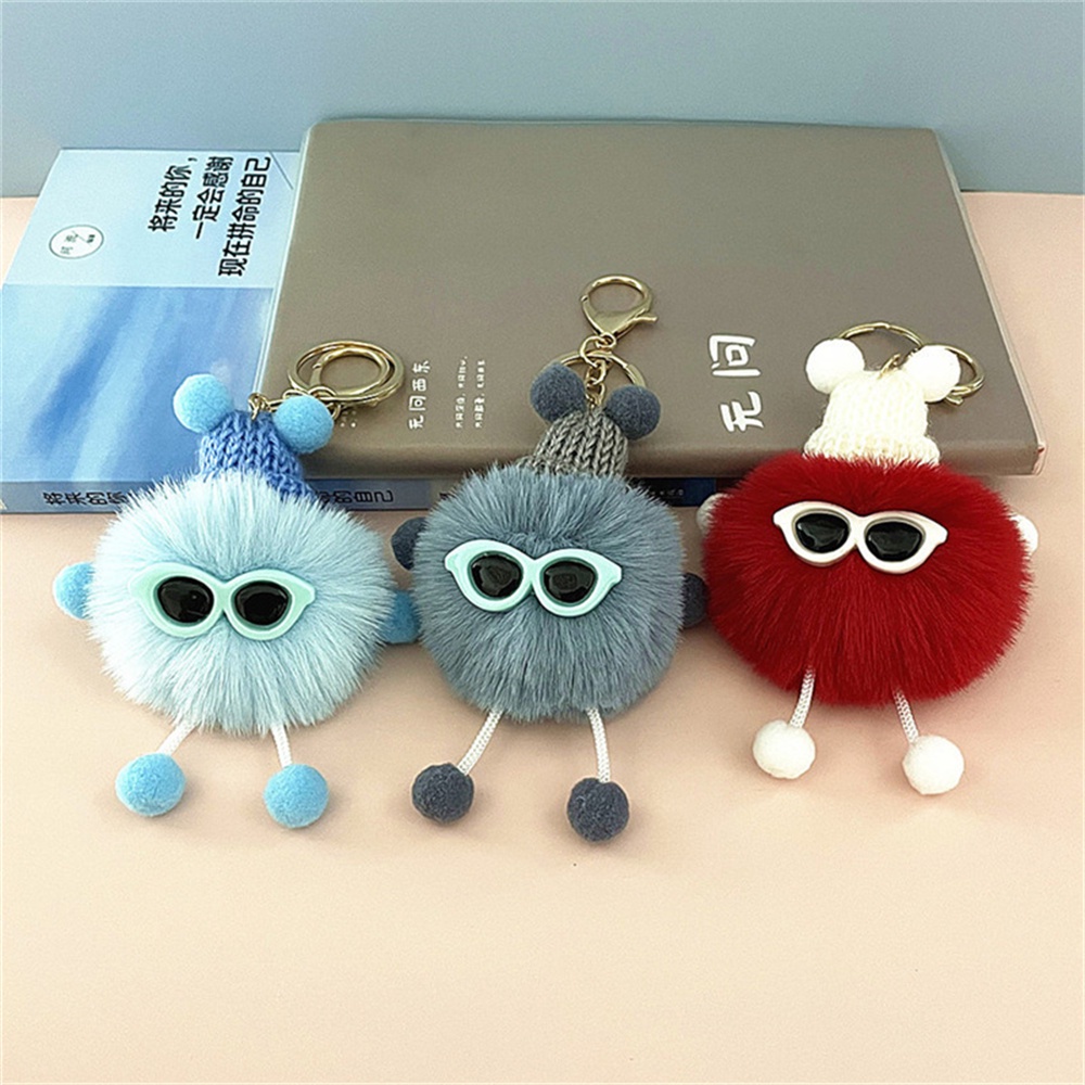 Cute Mini Briquettes Plush Keychain Creative Multicolor Cartoon Pom Pom Doll With Metal Keyring For Women Girls Backpack Charm Accessories