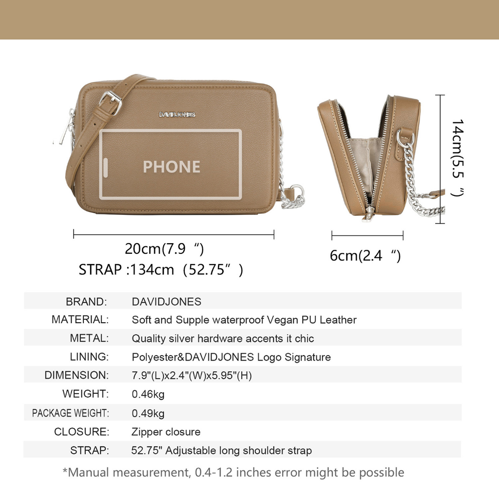 David Jones Paris women shoulder bag pu leather female crossbody bag chain small square bag