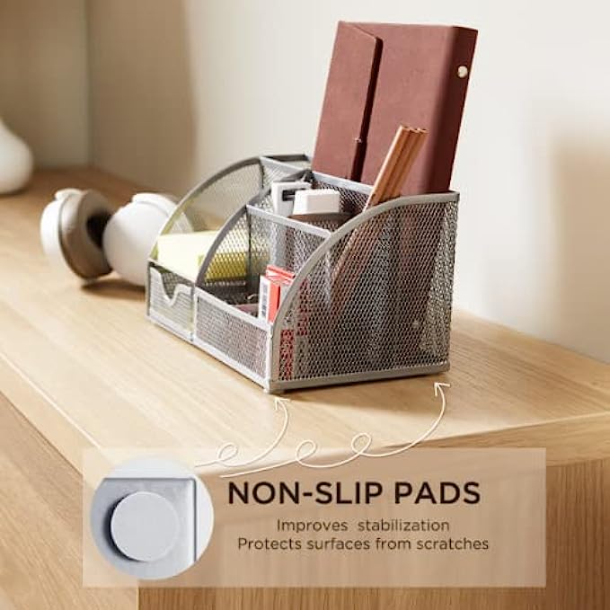 【IDEAL STOERAGE FOR OFFICE SUPPLIES】FURNINXS desk organizer is designed with 4 non-slip pads for improved stability. Protects furniture surfaces from scratches while helping you organize your desk. Our office organizer is a great gift for almost anyone on your list