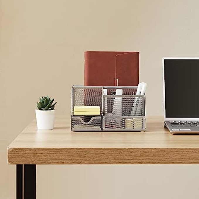 【DURABLE METAL MESH MATERIAL】This desk organizer and accessories are made of high-strength metal mesh material, which is moisture resistant and easy to clean. The sleek and minimalist design of the desk organizer is better for organizing things and decorating your office