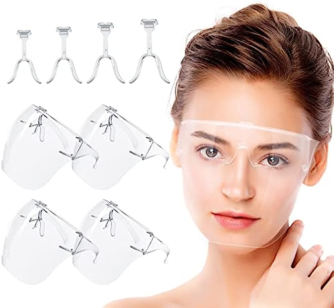 【Face Shields with Glasses 4 Pack 】: Face shield mask comfortable,stylish, and sanitary premium protective face shield visor glasses. Made with durable scratch-resistant thick polycarbonate plastic. face sheild/goggles masks with shields plastic mask shield face shield glasses plastic shield