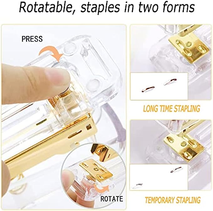 【Robust & Durable】Our stapler, long tail clip, scissors, ruler, pen, staples made of high-end acrylic and gold-plated metal material, transparent and shiny like glass, naturally elegant and beautiful, sturdy and durable.These gold desk accessories are perfect for home, school, and office decor and use.