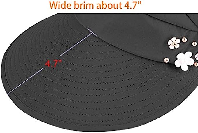PACKAGE INCLUDE: 1 x Sun Visor Hat; Color: Navy. It is Original Product, 100% Satisfaction, Money Back Guarantee! If for whatever reason you are not happy with our product, we will give a full refund no question asked. Elastic closure Hand Wash Only SUN PROTECTION: The sun hat with wide brim effectively keeps you away from UV or other harmful rays and offers your skin considerate care. HIGH-END MATERIAL: Superior polyester fabric guarantees lightweight and breathable quality for the sun hat.High-density sweatband and mesh ensure excellent heat dissipation and comfortable dressing experience. UNIQUE STYLE: Beautiful flowers and pearl decoration on the hat brim show your feminine charm. While the floral leaf pattern underneath the brim makes our sun hat different from ordinary ones.