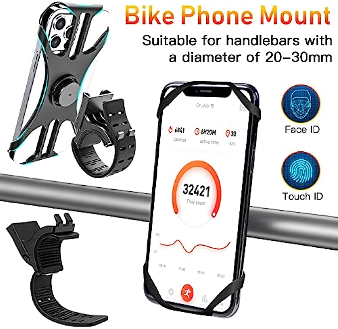 • Easy to install bike mount for handlebars with diameter 18-43mm. The phone will not fall or slide while driving bike.