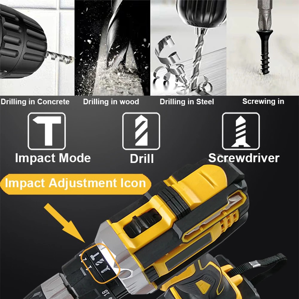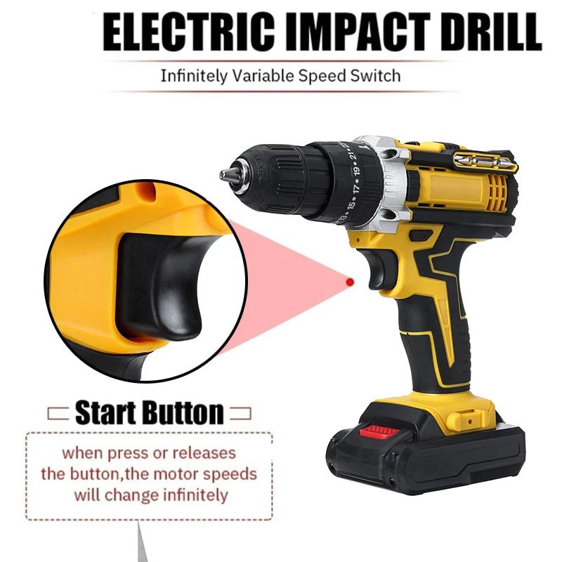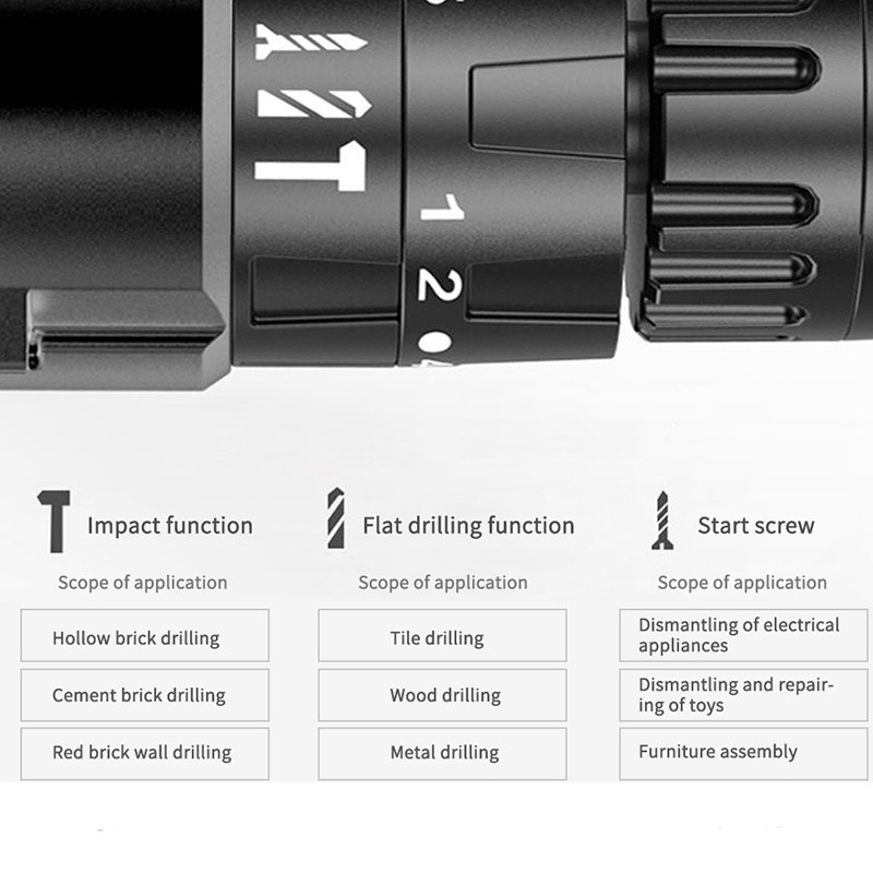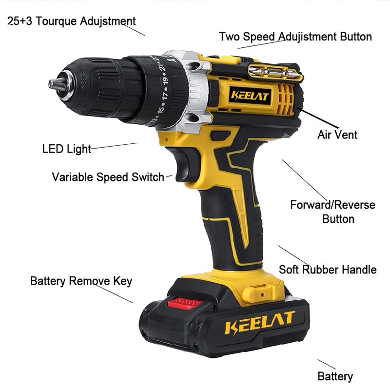 KEELAT SG Wall Drill 39pc Electric hand drill Cordless Drill Impact Drill Screwdriver With Wrench 3 Mode 36v / With LED