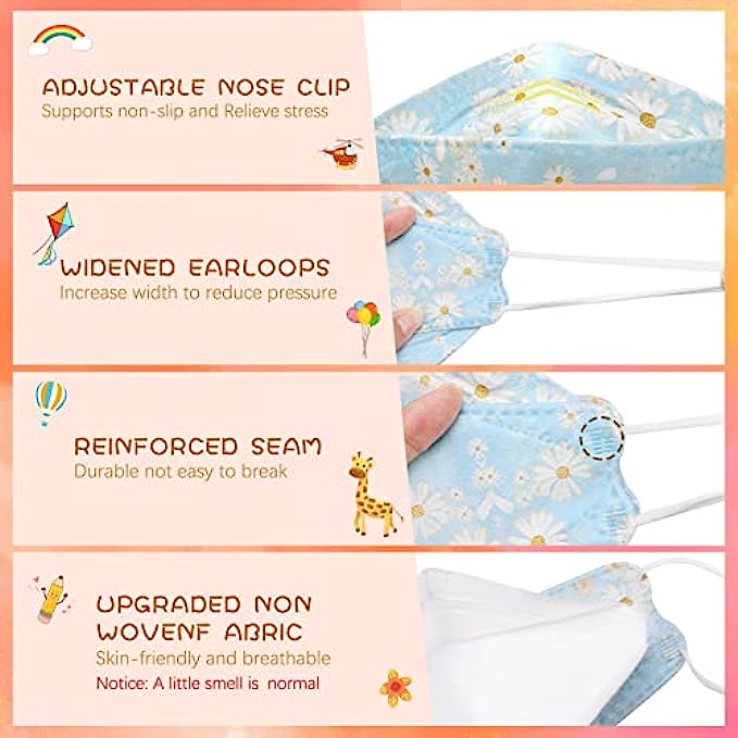 • 【Product Introduction】: kids disposable face masks,The folding specification is :17*7CM, the unfolding is :17*15 CM, four layers of protection, can be close to the face, get the best protection effect, the ear hook is 6CM, the longest stretch is 18CM, and the elasticity is excellent.