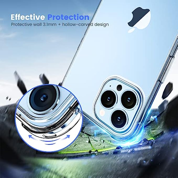 • Transparent and anti-yellow Cover : Clear case for iphone 13 pro Using high-definition tpu and pc material, which effectively resist stains and sweat, not easy to get greasy and yellow over time,perfectly shows the original color of your phone.