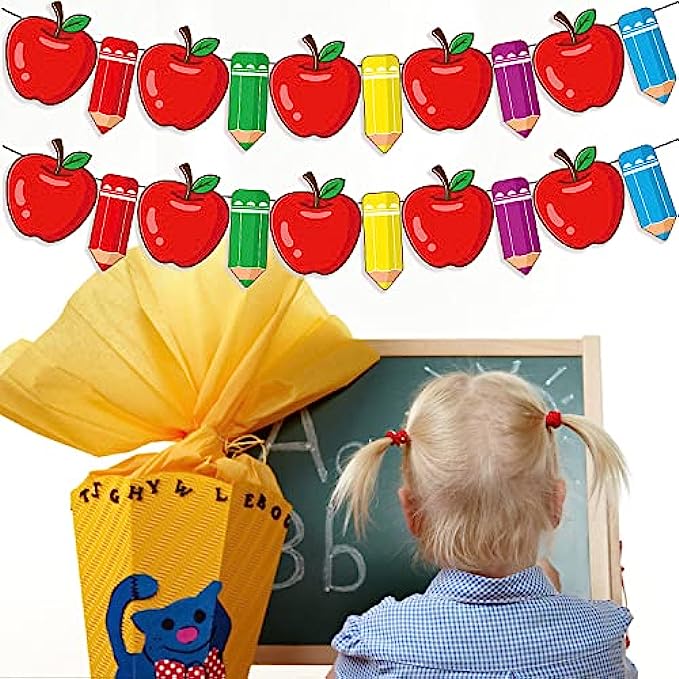 ?Package Includes: 2 string cute Pencil and Apple Banner, adopts bright printing colors and unique graphic design, which are full of first day of school party atmosphere.