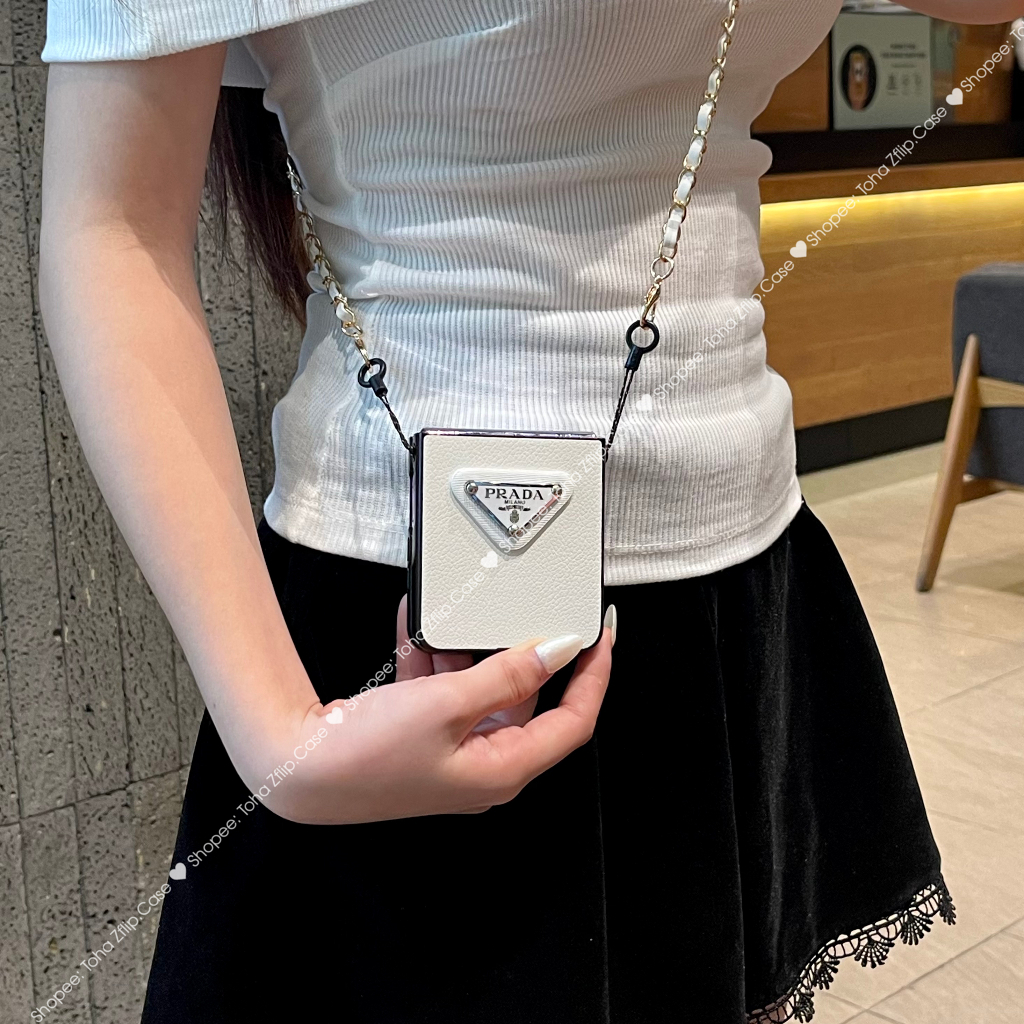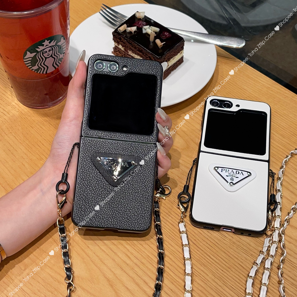 Samsung Z Flip 5 Lumpy Leather Luxury Case With ZFlip5 / Z Flip5 Cross Roof Strap