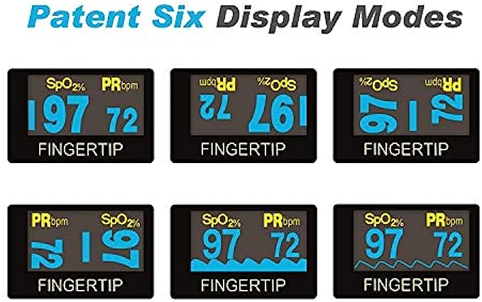 • FAST AND EASY OXIMETER READINGS - Taking your oxygen and pulse readings with this digital oximeter is as simple as pressing a button. It uses patented technology and can show readings in four different directions with 6 display. Taking the SpO2 readings (blood oxygen saturation levels) at convenience of your home or outdoor