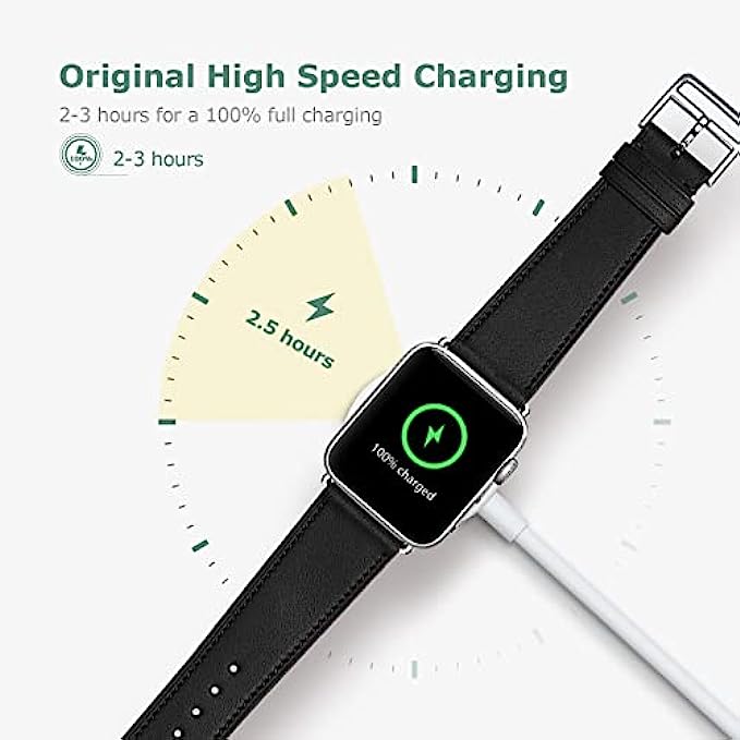 【Fast Efficient Charger】This watch charger offers original fast charging speed for your watch series 1/2/3 in 2 hours and 3 hours for series 4/5/6/7. Note: Please take off the watch case and use a 5V/1A adapter or original adapter for better charging.