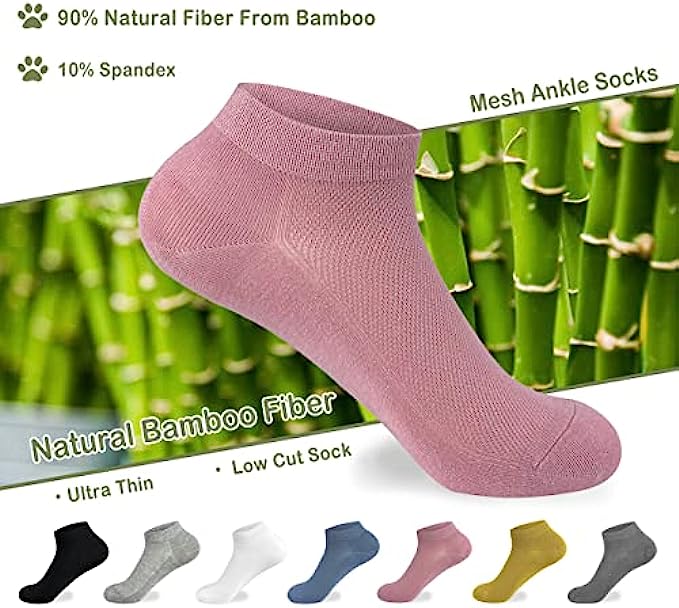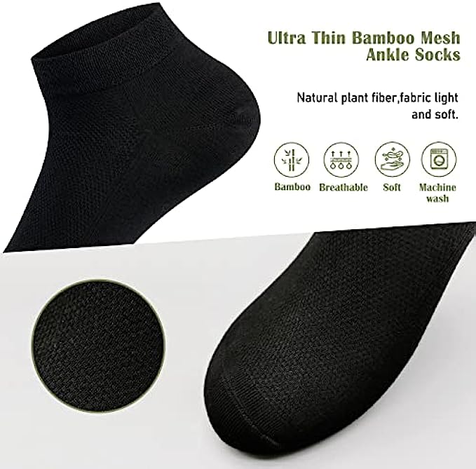 90% Natural Fiber From Bamboo,10% Spandex Imported Machine Wash Bamboo fiber fabric is light and soft, comfortable to wear.Natural plant fiber, adding a force to environmental protection! Breathable mesh ventilation and moisture management keep feet cool and comfortable. The smooth toe seam construction eliminates bulky seams to reduce fraying and prevent blisters. M size should fit no problem for shoes size 4 to 8. L size fit for 8 to 11. Ultra thin and lightweight bamboo fiber fabric provides good moisture circulation, which is good for perspiration without stuffy feet and reduces odor. The natural antibacterial ingredients in bamboo have the characteristics of natural antibacterial, anti-mite and anti-odor. Soft and skin-friendly, suitable for running, fitness, home and other occasions, from sports leisure to work. Retains its original shape after multiple washes and is machine washable. Bamboo fibril is a brand-new natural fiber, which is obtained by combining physical and chemical methods.Environmental protection and health coexist !