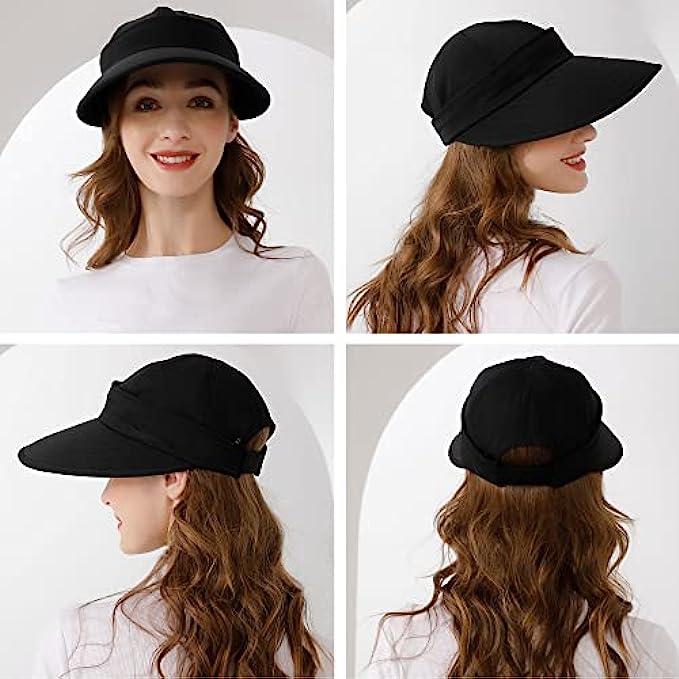 65% Cotton, 35% Polyester Imported 2 in 1 Zip-Off Removable Womens Sun Hat - This sun hat for women with a zip off crown for optional visor, so you can wear it either as a sun hat to cover your head or simply as a wide brim sun visor hat UPF 50+ Sun Protection Hat - This golf hat for women provides extra UV protection from sun rays by covering your eyes & face with its' wide brim, helps you stay cool as you enjoy your outdoor activities in the sun Easy to carry - The sun visor is lightweight and foldable, which makes it a good companion when travelling. And the breathable fabric, keep you feel cool outside in hot summer days Adjustable, one size for most - Womens beach hat can be adjusted with its' back closure, the head circumference is 21.6'', adjustable 6-7cm from up and down. The height of fishing hat is 3.5'' and the brim width is 4.3'' Go for traveling - This sun protection hat can be used for casual daily wear or outdoor, ideal for golf, beach, camping, hiking, tourism, jogging, running, walking or other sports and activities. It also makes a great gift for friends and family