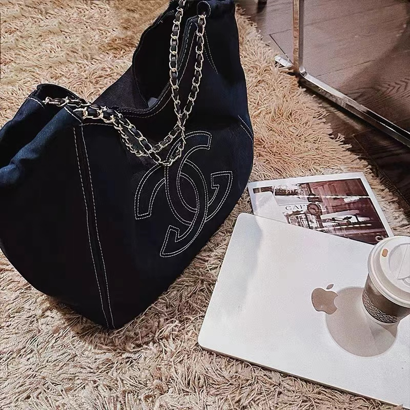 Xiaoxiang Style Big Bag Women New Large-Capacity Denim Tote Versatile One-Shoulder Commuter Portable