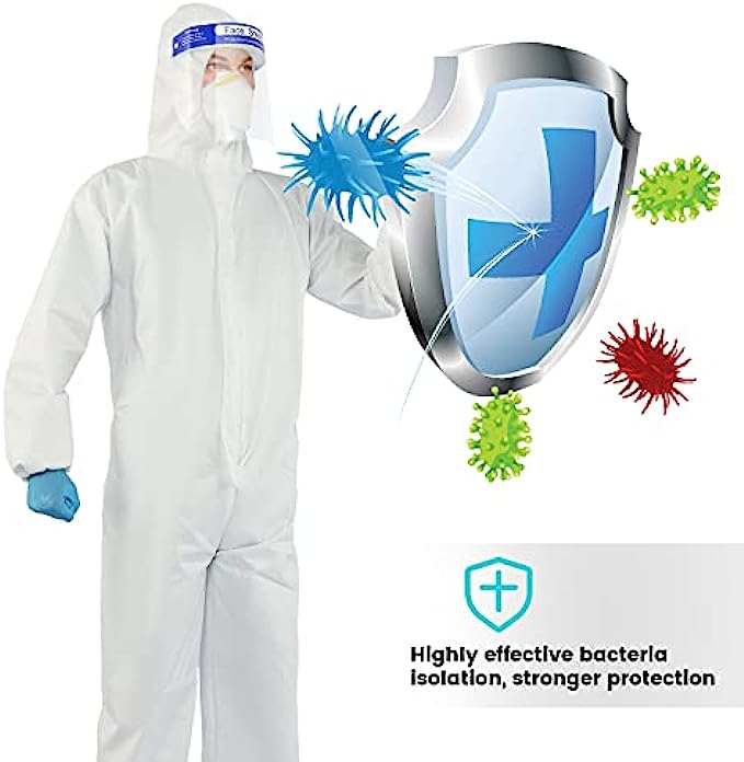 MULTIPLE APPLICATION: These unisex disposable garments are ideally suited for use in industrial, electronic and other environments. This coverall clothing can be also used for such activities as manufacturing, mold remediation, cleaning, plumbing, construction, painting.