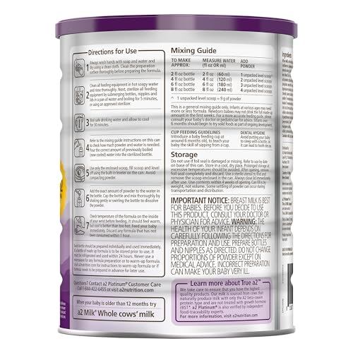 a2 Platinum® Premium Infant Formula for Babies Ages 0-12 Months, Whole Milk Powder-Based Formula with Iron, Nutritionally Complete, Made with Pure and Natural a2 Milk®, 31.7- oz Can