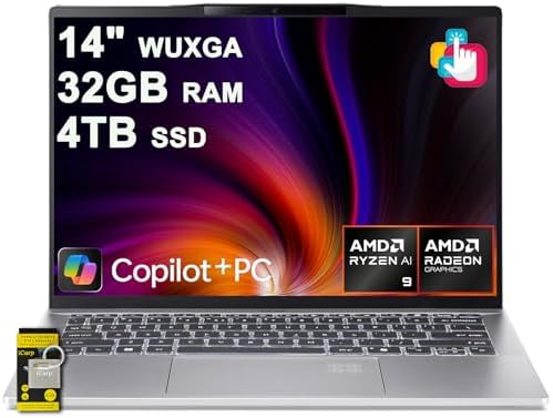 Swift 14 AI Portable Laptop 14" WUXGA Matte Touchscreen AMD 10-core Ryzen AI 9 365 (Up to 50 NPU Tops - Up to 73 GPU Tops) 32GB RAM 4TB SSD for Creator Business Work Win11 ICP Hub/Copilot+ AI PC