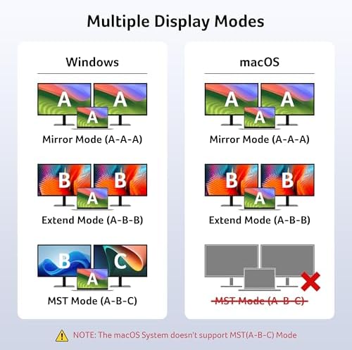 USB C to Dual HDMI Adapter 4K@60Hz, 4-in-1 USB C Hub Multiport Adapter with 100W PD, USB 3.0, Docking Station Dual Monitor, Compatible with Acer, MacBook Air/Pro, Dell XPS, HP, etc