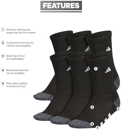 Unisex Youth Athletic Cushioned 6-Pack, Crew Socks Kids for Sports, Durable & Breathable