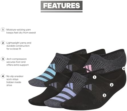 Women's Superlite 3.0 6-Pack Super No Show, Athletic Socks, Invisible Ultra Low-Profile, Cushion & Arch Compression
