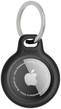 Apple AirTag Secure Holder with Key Ring - Durable, Scratch-Resistant Case with Open Face & Raised Edges - Protective AirTag Keychain Accessory for Keys, Pets, Luggage, & More - Black