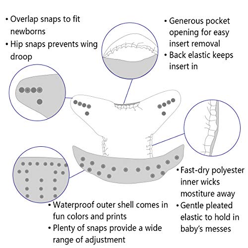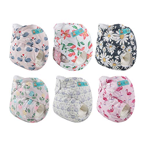 ALVA 6 Pack Cloth Diaper with 12 Inserts One Size Adjustable Washable Reusable Diaper Cover for Baby Girls and Boys