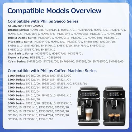 AquaClean Water Filter for Philips Coffee Machines, 4-Pack Aqua Clean Filter High-Efficiency Coffee Machine Water Filter, Improves Coffee Taste & Protects Machine