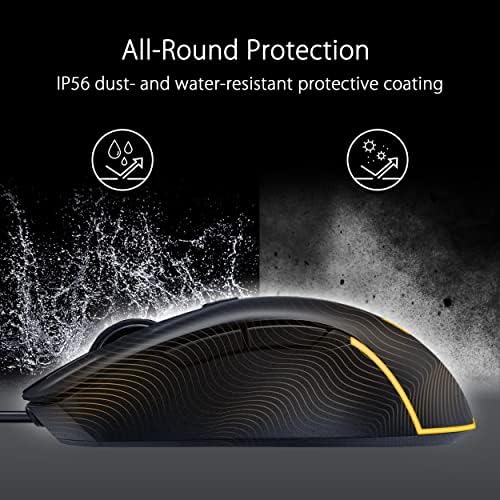 TUF Gaming M3 Gen II Gaming Mouse, Wired, 59g Lightweight, IP56 dust & Water Resistance, Antibacterial Guard, 8K DPI Optical Sensor, 6 Programmable Buttons, Teflon Mouse feet, Black