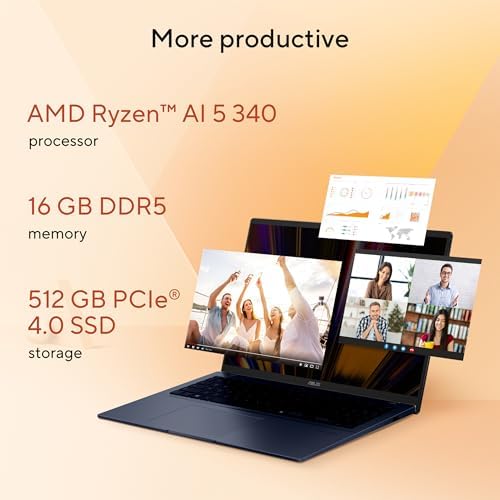 Vivobook 16 Laptop, Copilot+ PC, 16” WUXGA 60Hz Display, AMD Ryzen AI 5 340 with XDNA NPU, AMD Radeon Graphics, 16GB RAM, 512GB SSD, Quiet Blue, M1607KA-DS54