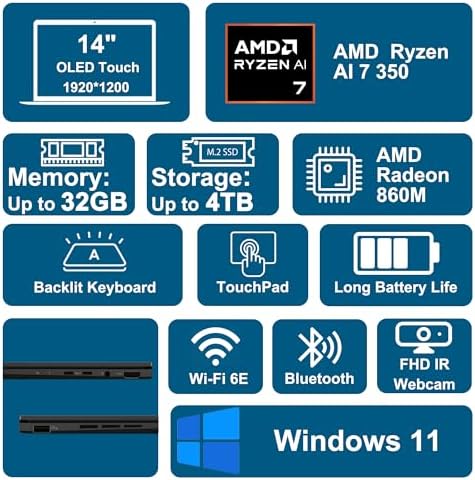 Sponsored Ad - Zenbook 14 Laptop 14" WUXGA Lumina OLED Touch (100% DCI-P3, 500nits HDR) AMD 8-core Ryzen AI 7 350 (Up to 50 Tops) 32GB RAM 1TB SSD for Creator Business Professional Win11 ICP Hub w/Cop