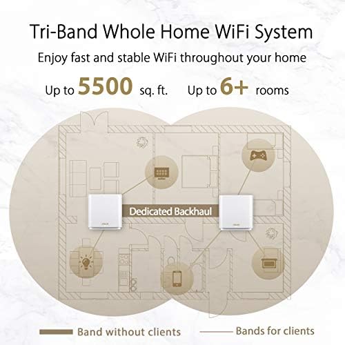 ZenWiFi AX6600 Tri-Band Mesh WiFi 6 System (XT8 2PK) - Whole Home Coverage up to 5500 sq.ft & 6+ rooms, AiMesh, Included Lifetime Internet Security, Easy Setup, 3 SSID, Parental Control, White