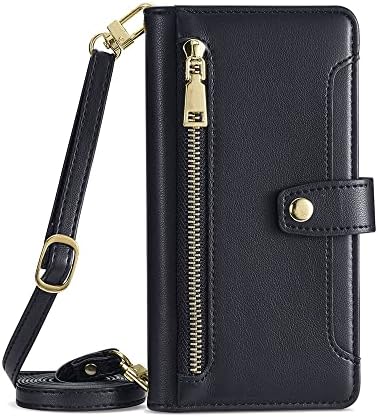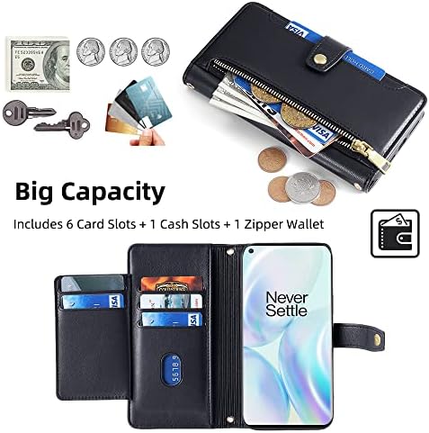 Phone Case for OnePlus 8 Pro One Plus 8Pro 5G Wallet Cover and Screen Protector Zipper Credit Card Holder Slot Kickstand Flip Cell Accessories On 1Plus 1 + Plus8 1+ OnePlus8Pro Women Men Black