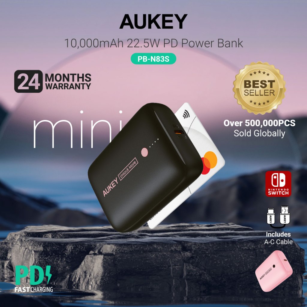 Aukey PB-N83S/PB-Y55 10000MAH 22.5W PD Fast Charging Powerbank Portable Charger (24 Months Warranty)