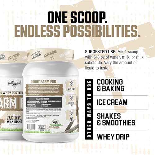 Axe & Sledge Farm Fed 100% Whey Protein Isolate | 25g Protein | Low Carb, Low Sugar, Gluten Free | Protein Powder for Men and Women | Keto | Made in The USA | 28 Servings, Vanilla Milkshake