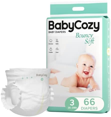 Baby Diapers Size 3(16-28lb),66 Count Babycozy Dry Disposable Diapers,Bouncy Soft Diapers Hypoallergenic Without Chlorine, Eco Friendly,Stop Overnight Diapers Leak