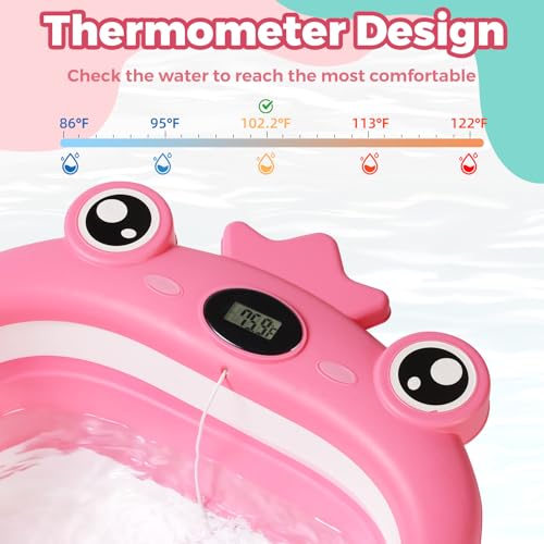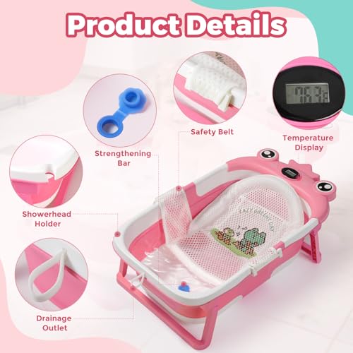 Baby Bathtub,Collapsible Baby Bath Tub with Soft Cushion & Thermometer, Space Saving Foldable & Travel Newborn Bathtub for Infant to Toddler 0-36 Months, Frog Blue