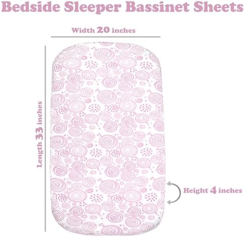 5 Pack Organic Bedside Bassinet Sheets Compatible with Mika Micky, Baby Delight, Dream On Me, AMKE and Other Bassinet Mattress Pads Size Between 17-21 in Width, 29-33 in Length, and 1.5-4 in Thick