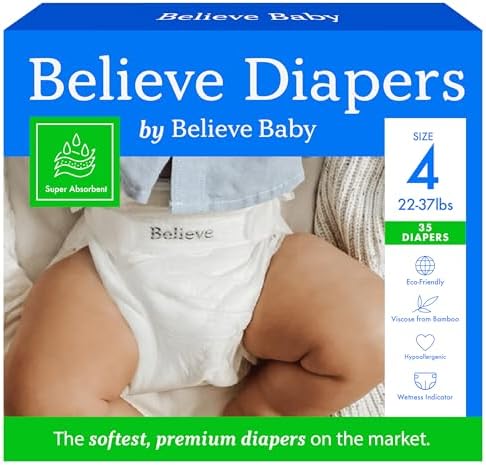 Sponsored Ad - Diapers Size 4 (22-37 Lbs) Viscose Bamboo Diapers 35 Count – Natural Baby Diaper, Chemical Free and Fragrance Free Natural Diaper for Sensitive Skin, Super Absorbent with Leak Protectio