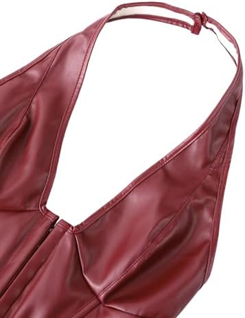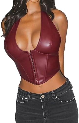 Women's Y2K Leather Halter Top Backless Corset Bustier Top Lace Up Sexy Going Out Crop Tank Halter Neck Party Club