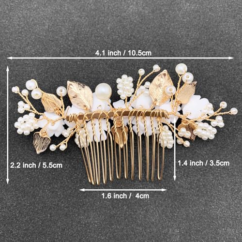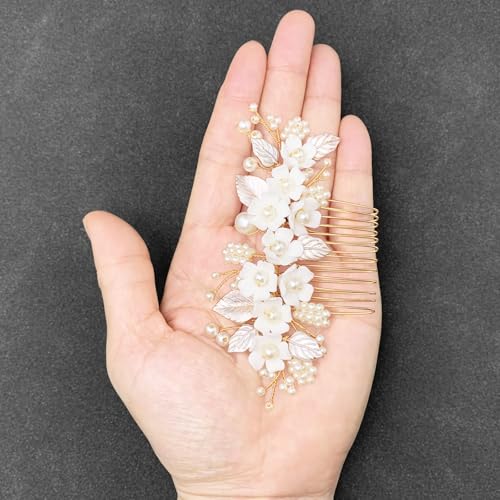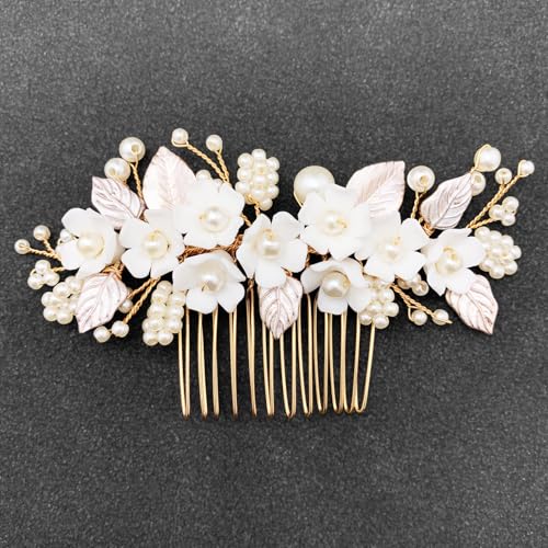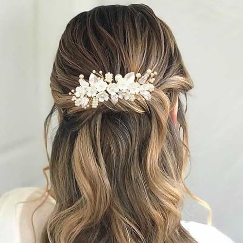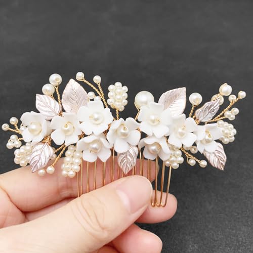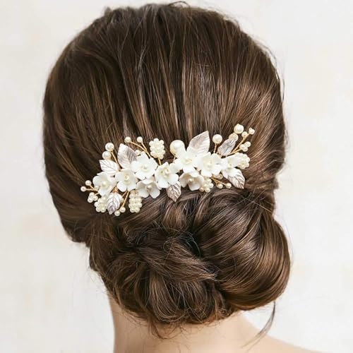 Sponsored Ad - BETITETO Bridal White Hair Comb Pearl Leaf Ceramic Flower Hair Pin Piece Accessories for Wedding Women