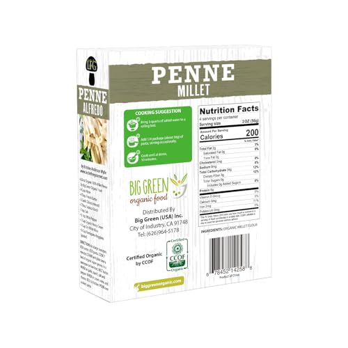 Big Green Organic Food- Organic Millet Penne, Gluten-Free, Lectin-Free, Non-GMO, Vegan, Wheat and Rice Alternative, 8.8oz (1)